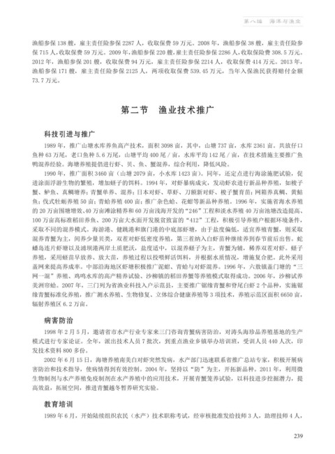 模式进行专家论证。全年,派出技术人员 7 批次,到重点渔业乡镇举办培训班,受训人员 440 人次,印