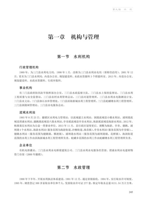 月,更名为三门县水利局,内设办公室、规划建设科、水政水资源科 3 个职能科室。2013 年,内设办公室、