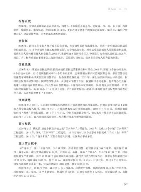 2006 年,完成各乡镇防汛会商室改造,构建 14 个乡镇的会商系统,实现省、市、县、乡(镇)四级