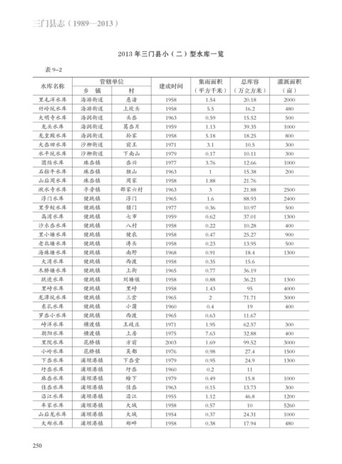2013 年三门县小(二)型水库一览