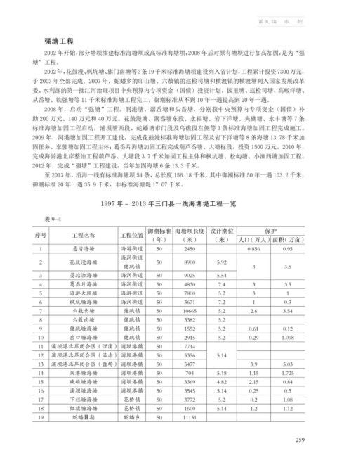1997 年~ 2013 年三门县一线海塘堤工程一览