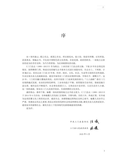 《三门县志(1989—2013)》作为续志,上承首部三门县志的文脉,下接 25 年社会变迁的