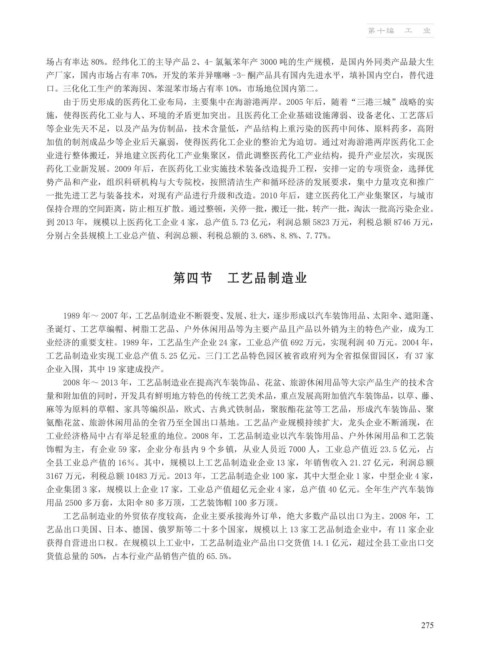 全县工业总产值的 16%。其中,规模以上工艺品制造业企业 13 家,年销售收入 21.27 亿元,利润总额