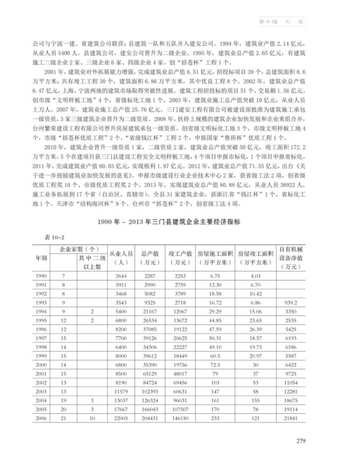 上万人。2007 年,建筑业施工总产值 25.76 亿元。三门建安工程有限公司被建设部批准为建筑施工承包