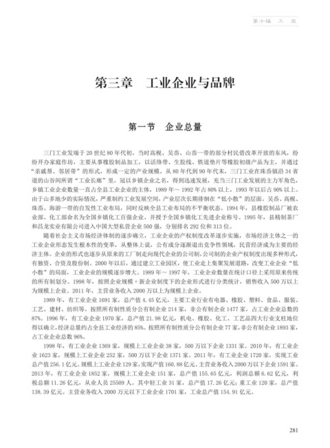 87%。1996 年,有工业企业 1970 家,总产值 21.98 亿元,机电、橡胶、化工、工艺品四大行业支柱地位