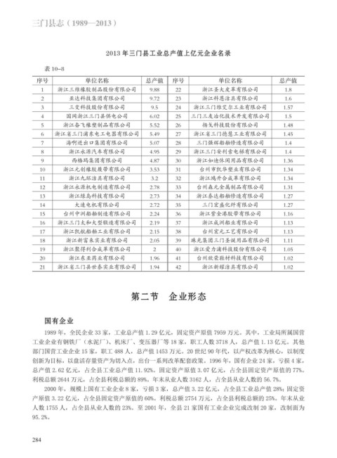 2013 年三门县工业总产值上亿元企业名录