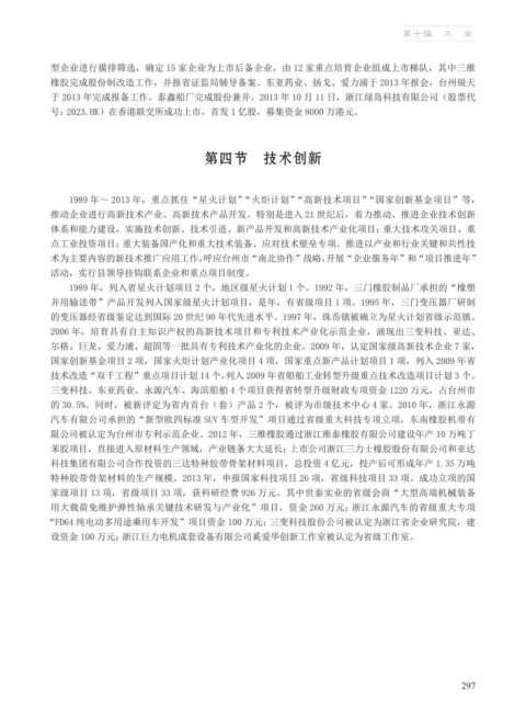 1989 年,列入省星火计划项目 2 个,地区级星火计划 1 个。1992 年,三门橡胶制品厂承担的“橡塑
