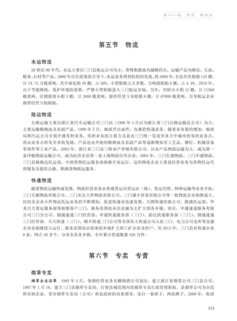 企业也相继投入运行。服务范围也由原来的乡镇扩大到工矿企业及村户。至 2013 年,三门县有快递企业