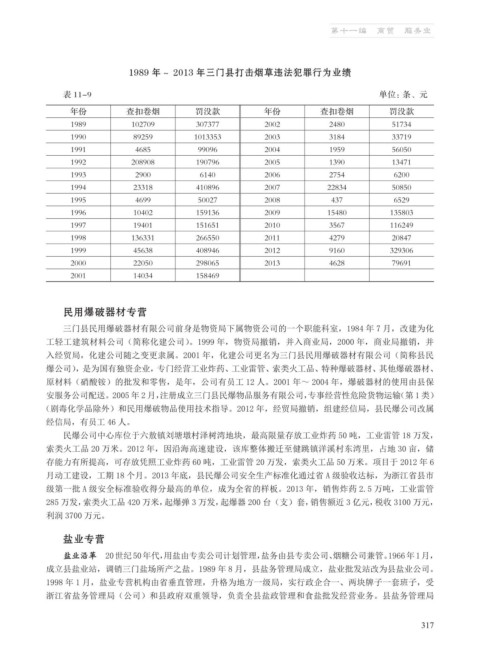 1989 年~ 2013 年三门县打击烟草违法犯罪行为业绩
