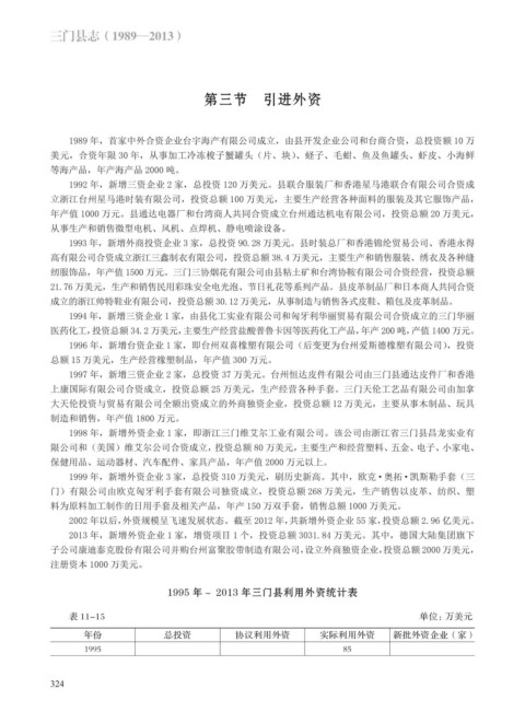1998 年,新增外资企业 1 家,即浙江三门维艾尔工业有限公司。该公司由浙江省三门县昌龙实业有