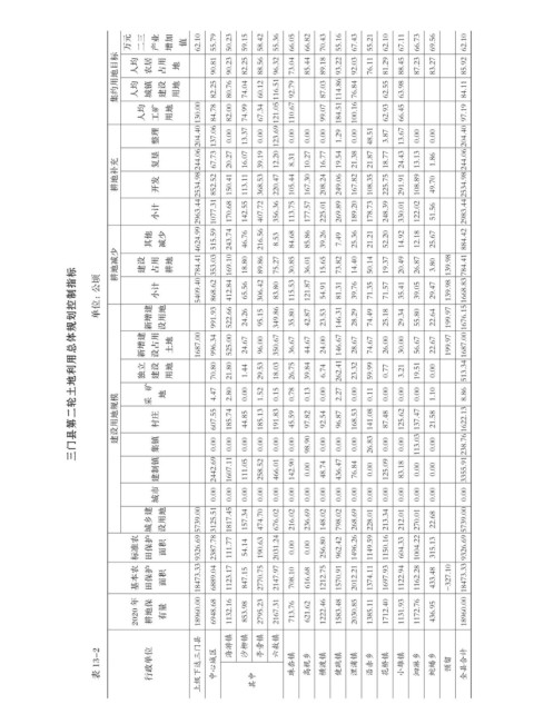 行政单位 上级下达三门县 中心城区 海游镇 沙柳镇 亭旁镇 六敖镇 珠岙镇 高枧乡 横渡镇 健跳镇 浬浦镇 沿赤乡 花桥镇 小雄镇 泗淋乡 蛇蟠乡 预留 全县合计
