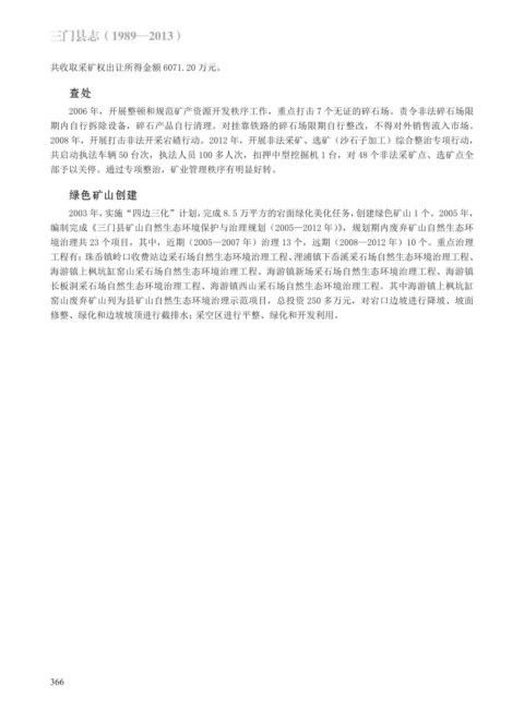 2006 年,开展整顿和规范矿产资源开发秩序工作,重点打击 7 个无证的碎石场。责令非法碎石场限