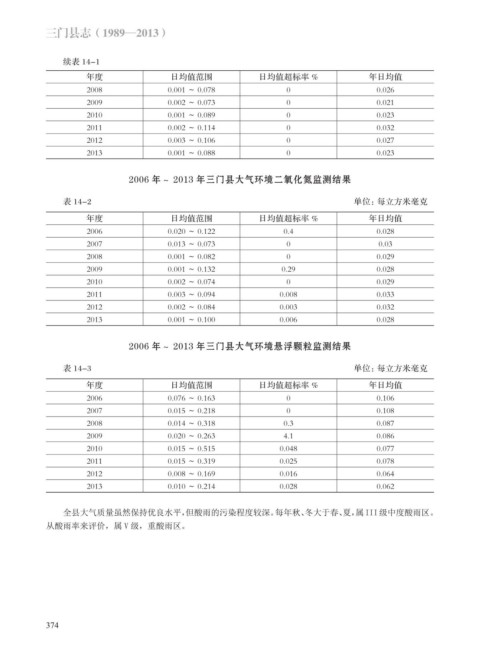 年度 日均值范围 日均值超标率 % 年日均值