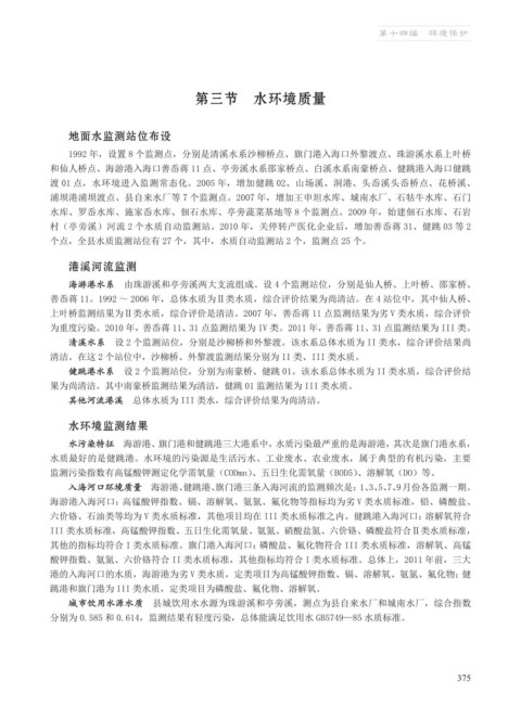 1992 年,设置 8 个监测点,分别是清溪水系沙柳桥点、旗门港入海口外黎渡点、珠游溪水系上叶桥