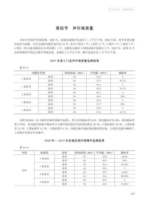 1989 年开始声环境监测。2003 年,创建县城噪声达标区 7.5 平方千米。2006 年前,着手各类功能