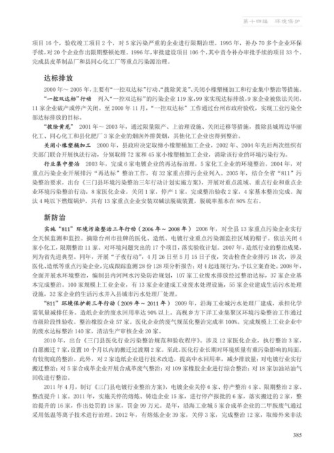 实施“811”环境污染整治三年行动(2006 年~ 2008 年) 2006 年,对全县 13 家重点污染企业实行