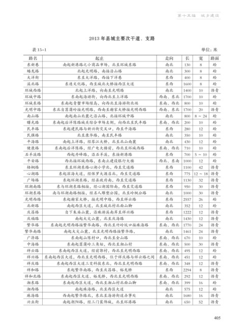 路名 起止 走向 长 宽 路面