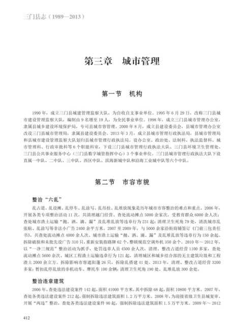 市建设管理监察大队,编制由 9 名增至 19 人,为全民事业单位。1998 年,成立三门县城市管理办公室,