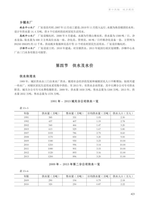 职责,城关分公司专司水费收缴职责。2009 年,供水量 1650 万吨,售水总量为 1268 万吨。2013 年,供