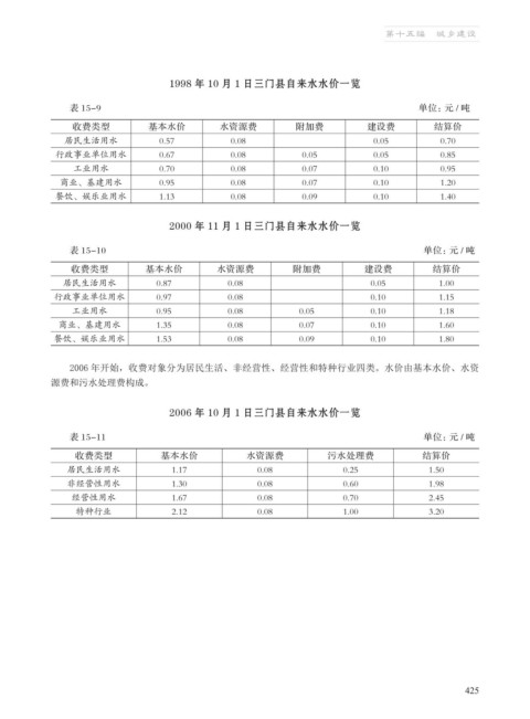 2006 年开始,收费对象分为居民生活、非经营性、经营性和特种行业四类。水价由基本水价、水资