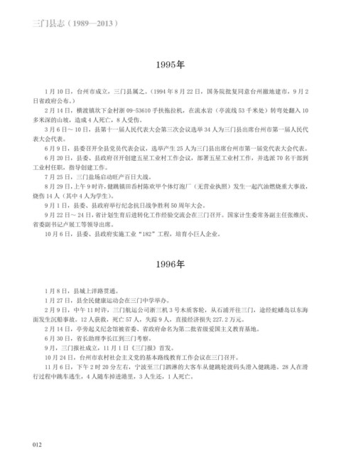 1 月 10 日,台州市成立,三门县属之。(1994 年 8 月 22 日,国务院批复同意台州撤地建市,9 月 2