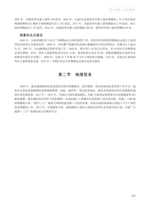 泥板窨井盖在全市推广。2009 年,完成 12 个乡镇 36 个 GPS D 级控制点测量。2010 年,完成 GPS 地面参
