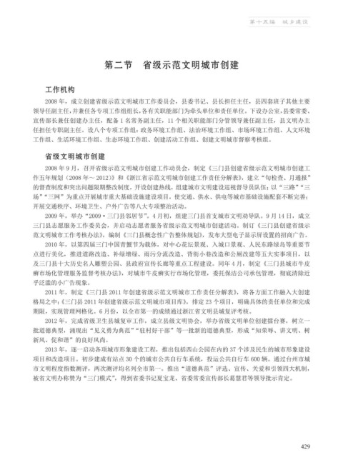 格局之中;《三门县 2011 年创建省级示范文明城市项目库》,排定 23 个项目,明确具体的责任单位和完成