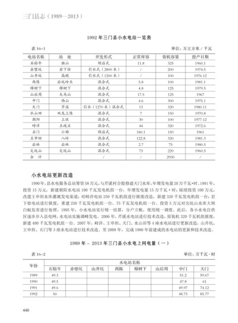白蚁危害进行处理。1995 年,小水电站实行统一结算,分户立帐,使用统一调度。此后,各小水电自供