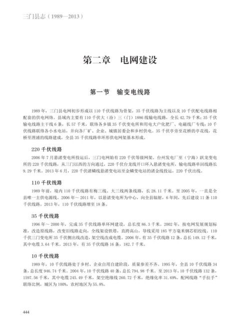 1989 年,三门县电网初步形成以 110 千伏线路为骨架,35 千伏线路为主线以及 10 千伏配电线路相