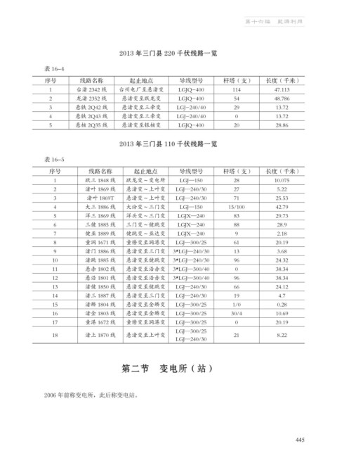 序号 线路名称 起止地点 导线型号 杆塔(支) 长度(千米)