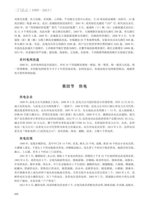 更名为“国家电网三门县供电公司”。设有滨海、珠岙、健跳、沿赤、小雄 5 个供电所。