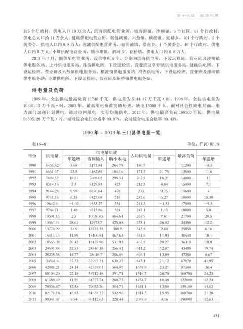 1990 年~ 2013 年三门县供电量一览