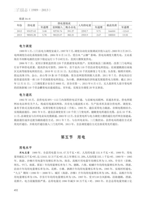 用光纤通信,并将光纤通信接入三门光纤网。2013 年,全县调度通信方式全部采用光纤通信。