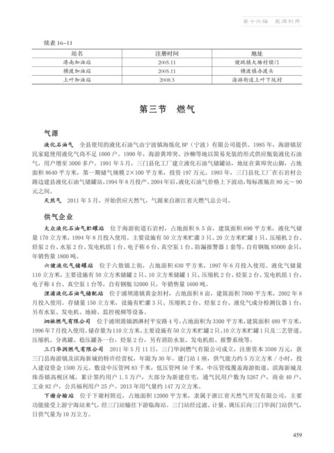气,用户增至 3000 多户。1991 年 5 月,三门县化工厂建立液化石油气储罐站,地址在黄埠突山脚,占地