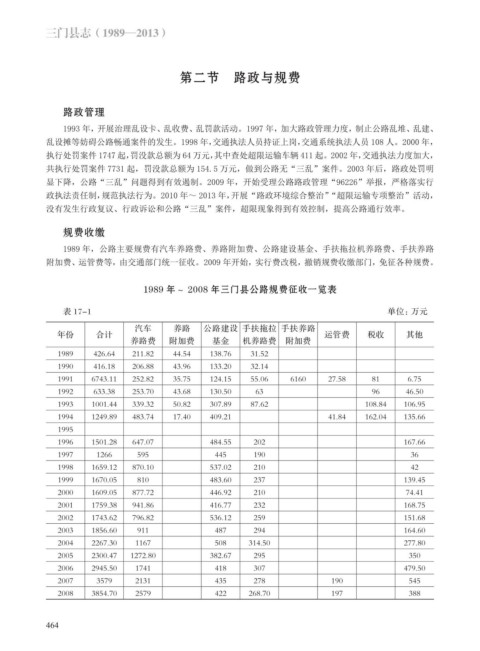 1989 年~ 2008 年三门县公路规费征收一览表
