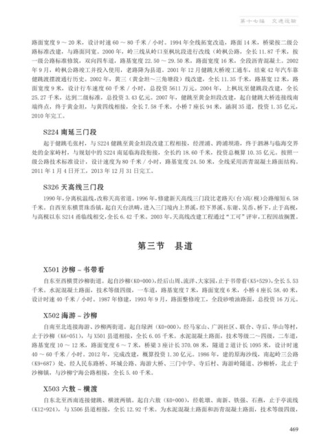25.27 千米,达到二级标准,总投资 3.43 亿元。2007 年,健跳至黄金坦段改建,起自健跳大桥连接线南