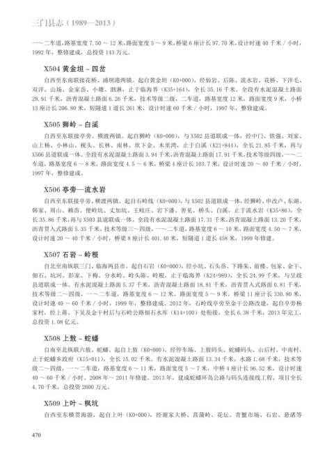 长 35.86 千米,再与 X503 县道联成一体。全段有水泥混凝土路面 17.31 千米,沥青混凝土路面 13.20 千米,