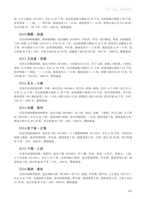 村(K8+058),全长 8.06 千米。水泥混凝土路面,技术等级四级,二车道,路基宽度 7 米,路面宽度 6 米,