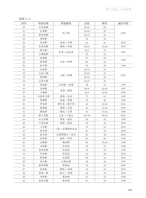 序号 桥梁名称 所处路线 长度 跨径 通车年份