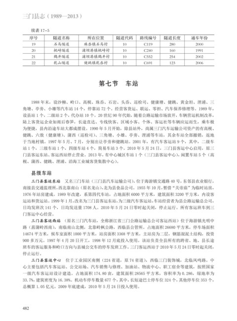 运站和货运站。1999 年 1 月,改名为三门县客运东站,为三级汽车客运站,车站经营者为县公路运输总公司,