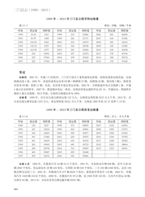 运输量 1989 年,全行业完成公路客运量 122 万人,公路客运周转量 5237 万人千米。2013 年,全