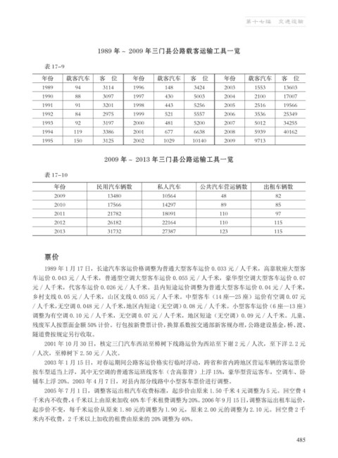 1989 年 1 月 17 日,长途汽车客运价格调整为普通大型客车运价 0.033 元 / 人千米,高靠软座大型客
