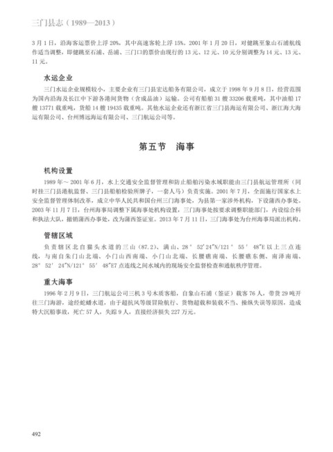 艘 13771 载重吨,货船 14 艘 19435 载重吨。其他水运企业还有浙江省三门县海运有限公司、浙江海大海