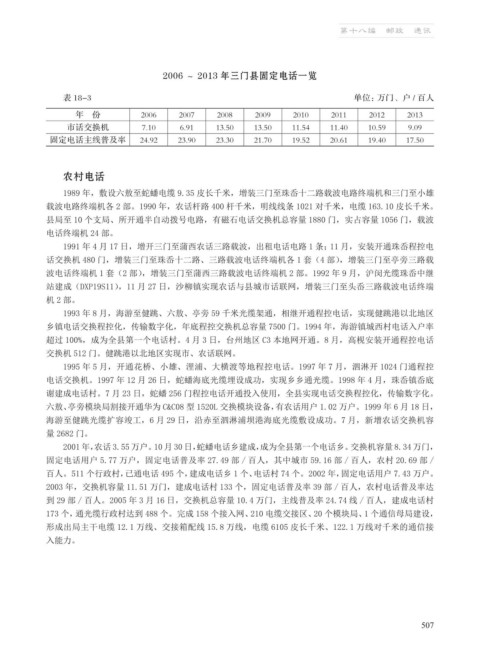 表 18-3 单位:万门、户 / 百人