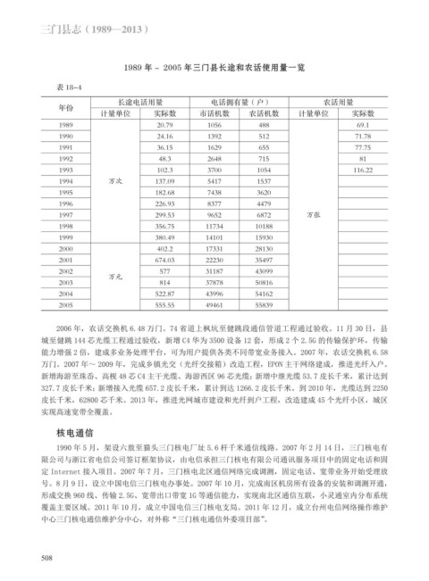 2006 年,农话交换机 6.48 万门。74 省道上枫坑至健跳段通信管道工程通过验收。11 月 30 日,县