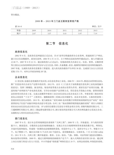 推广信息技术在企业生产过程中的应用。2012 年,出台《三门县关于加快推进信息化和工业化深度融合