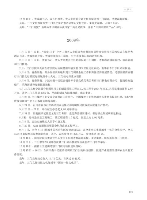 是年,三门县财政总收入 10.72 亿元,首次过 10 亿元。