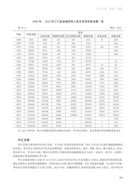 1989 年~ 2013 年三门县金融机构人民币各项存款余额一览