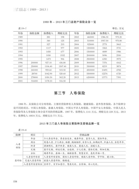 1996 年,从保险公司分列寿险,主要经营险种有人寿保险、健康保险、意外伤害保险,各个险种分