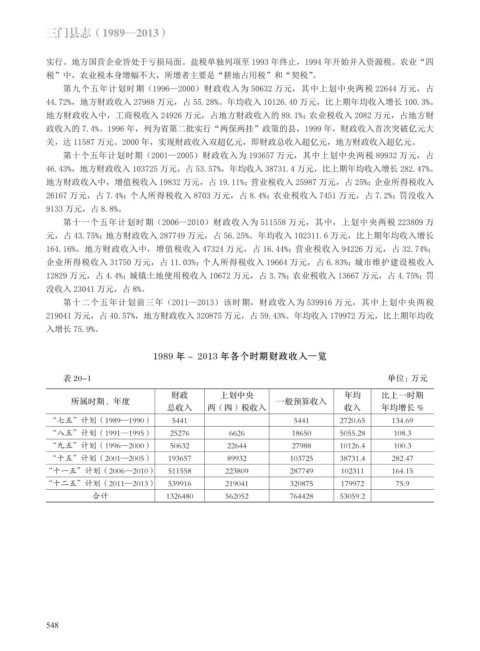 第十二个五年计划前三年(2011—2013)该时期,财政收入为 539916 万元,其中上划中央两税